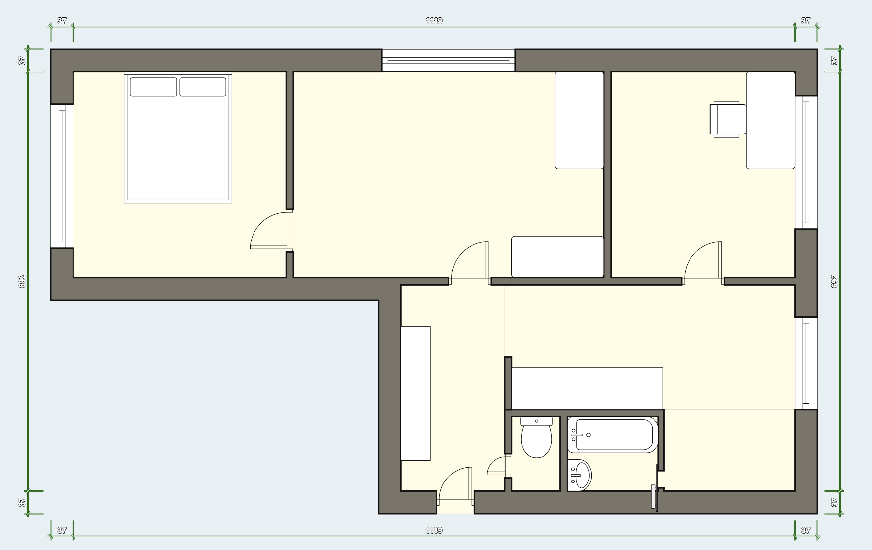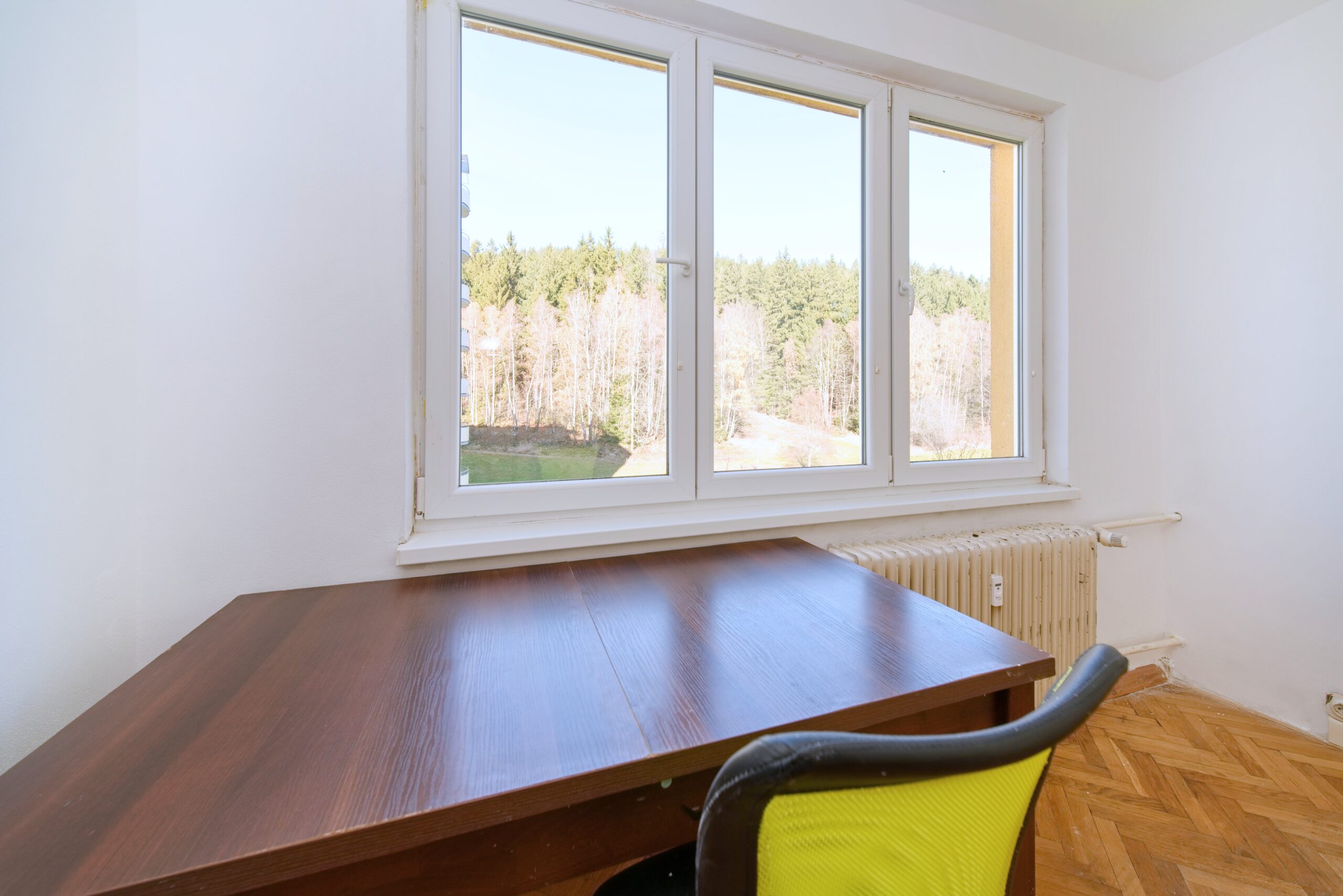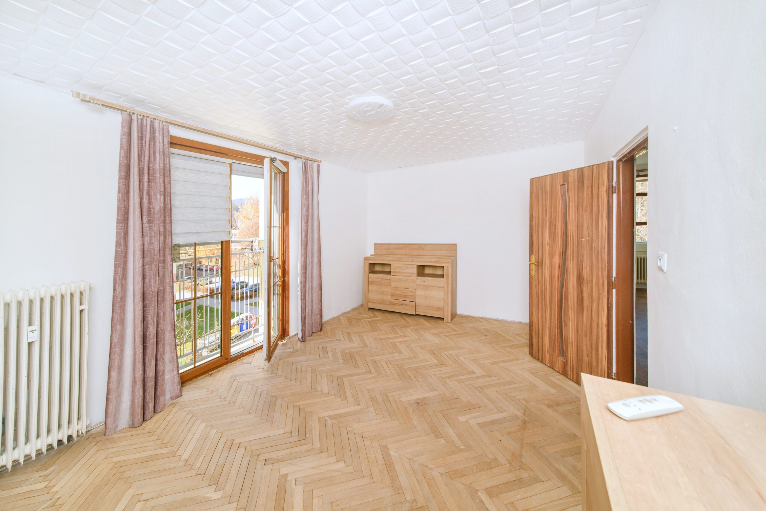 Byt je řešen prakticky – chodba, kuchyň, obývací pokoj, dva samostatné pokoje, koupelna a samostatné WC. Díky odděleným místnostem působí prostorně a je vhodný jak pro rodinu, tak pro jednotlivce, kteří hledají klidné bydlení v příjemném prostředí Šumavy.