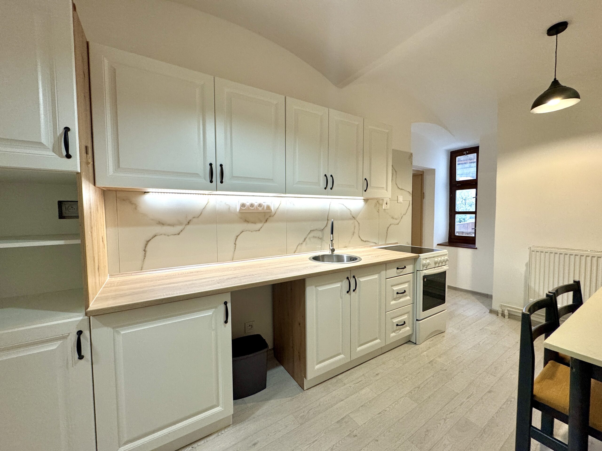 Nabízíme k pronájmu, částečně vybavený byt 2+1 o výměře 56 m², který se nachází v ulici Rooseveltova nedaleko centra Českého Krumlova. Byt prošel kompletní rekonstrukcí – má novou kuchyňskou linku, podlahy, rozvody a koupelnu. Okna jsou orientovaná na jihozápad, díky čemuž je byt světlý a slunný.